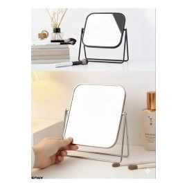 Gümüş Renk Ayarlanabilir KARE Metal Ayaklı Masa Üstü Makyaj Aynası –360° Döner,Dekoratif Tasarım