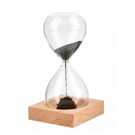 Manyetik Kum Saati Mıknatıslı Ahşap Standlı Dekoratif Masaüstü Hediyelik Süs Eşyası (14 cm)